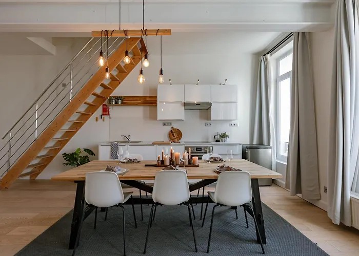 - ❓Wo findet man das Huswell - Apartment With Large Terrace In The City Of Ghent?Das Huswell - Apartment With Large Terrace In The City Of Ghent befindet sich im Bezirk Sluizeken-Tolhuis-Ham von Gent.